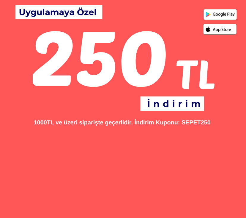 Uygulamamıza özel 250 TL İNDİRİM! Uygulamayı indir, sepette kodu kullan. İndirim Kodu: SEPET250😍